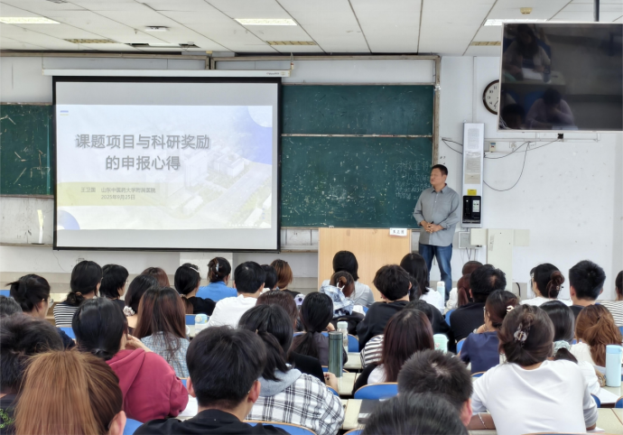 今年9月是我国首个科普月。为深入贯彻习近平总书记关于科技创新、科学普及和科学素质建设的重要论述,大力弘扬科学精神和科学家精神,切实推动康复知识普及、充分展示科研创新成果、全面提升师生科研能力,9月25日,康复医学院特邀山东中医药大学附属医院主任医师、博士生导师王卫国教授,举办了以“科技赋能康复:创新成果展示与科研申报指导”为主题的专题讲座。康复医学院党委副书记、院长马婷,副院长马山出席讲座。